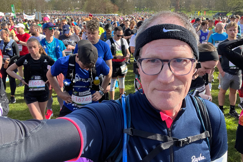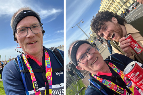 Some pics from the start, just as I finished and enjoying a much-needed Coke with younger son George who got up very early to come and watch 😁