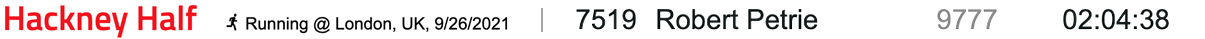 I ran the 13.1 miles in 2 hours 4 mins and 38 seconds and was very pleased with the result. Having only recently recovered from my cycling accident in 2020, I was concerned that my injured thigh would be a problem... and it was! While it didn't slow down my running in the event, I paid for it for a few days after when I could barely walk 😁