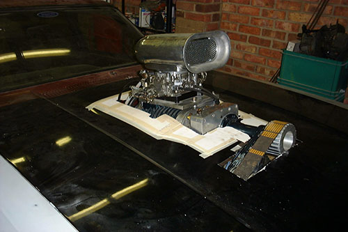 I used a 'spare' old bonnet and cut a massive, simple hole in it then used card taped in place to get the exact shape of the cutout around the engine.