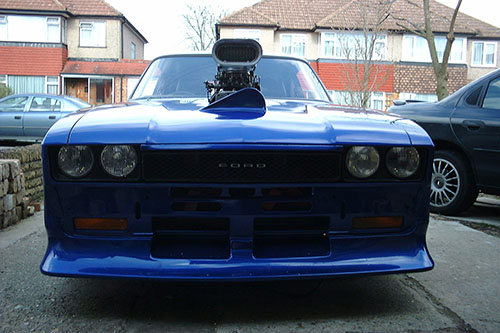 At last, the front of the car was finally in paint! Two coats of Ford Imperial Blue, followed by another 2 coats of clear. Plenty of polishing still required.