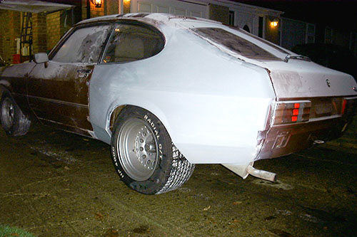 Both rears in primer and there was a real sense of achievement! Great to see it on big wheels and view the overall effect of the body mods so far.