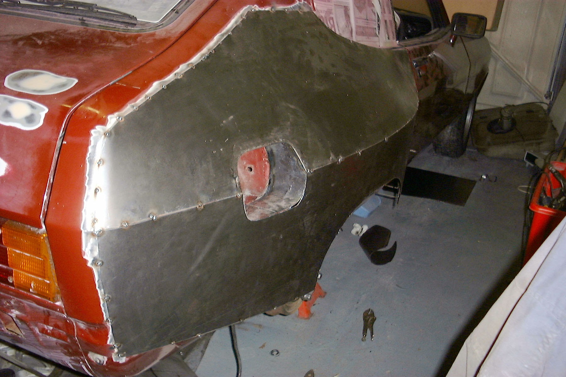 After trimming away the excess metal away, I could then tack the old wheel arch back in place on the new wing, from inside. I'm pleased with the result.