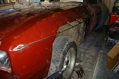 I set to with an air saw and hacked off a large part of the front wing! I intenden to re-use the good condition arch section in the new XXX Pack wing.