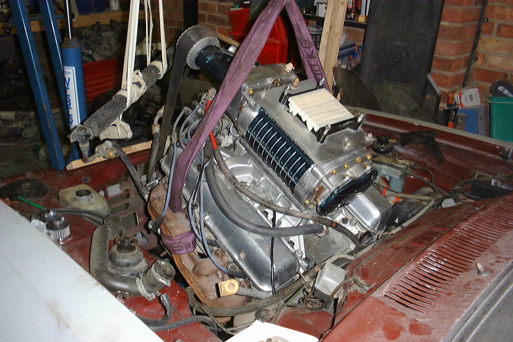 After years of casualy looking for a blown engine - my search for a Wade supercharged Rover V8 on Loot finally gave one result. Local too, so I just had to go and have a look. It was love at first sight! No sooner had I said "I'll have it" was it going in the back of a van and on its way home with me. Madness!
